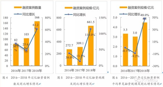從融資案例數(shù)及規(guī)模看,融資總額及單筆融資規(guī)模創(chuàng)近三年新高。2018年,中國醫(yī)療健康產(chǎn)業(yè)VC/PE融資案例數(shù)及規(guī)??傆嫹謩e為639起和704.5億元,相比2017年,融資案例數(shù)同比增長13.1%,小幅提升,融資規(guī)模同比增長101.7%,躍升顯著。2018年單筆融資規(guī)模達到2.5億元,是2017年的2倍左右,創(chuàng)近三年新高??傮w來講,醫(yī)療健康產(chǎn)業(yè)投資熱度延續(xù)上漲趨勢。